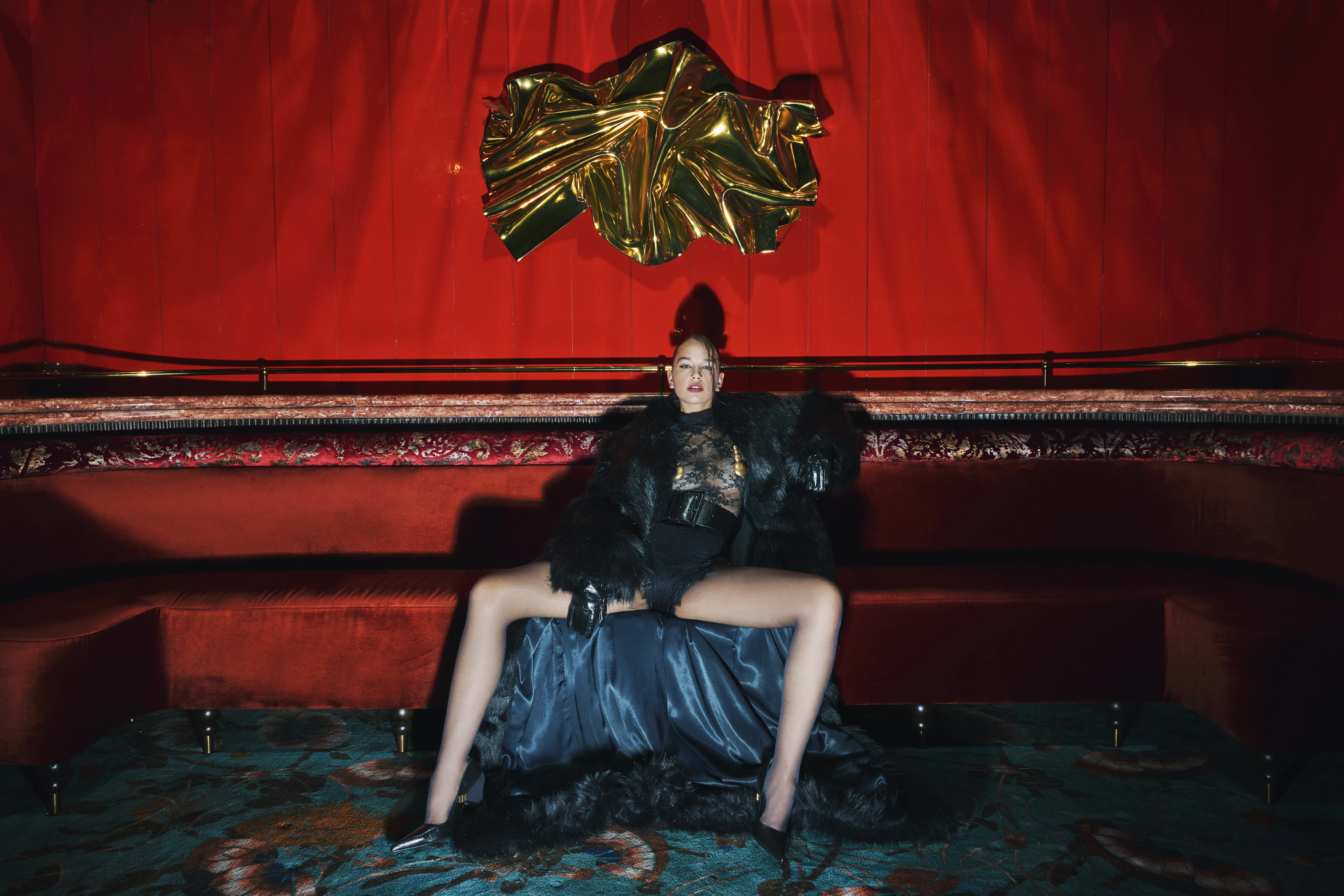 Blending the spirit of history with modern lines, “La Nuit Rouge” showcased the power, elegance, and inner transformation of women. The collection, consisting of 17 exclusive couture designs, offered dramatic elegance with black lace, velvet, and gold details, while the voluminous red skirt in the finale became the highlight of the evening.